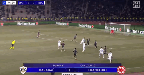 北京时间1月22日欧冠联赛阶段第7轮,卡拉巴赫主场对阵法兰克福。上半场,卡米洛-杜兰先拔头筹,随后乌尊破门扳平比分。下半场,沙伊比点射建功,卡米洛-杜兰闪电扳平梅开二度。补时阶段,穆斯塔法扎达读秒破门完成绝杀。最终法兰克福2-3遭卡拉巴赫读秒绝杀被提前淘汰。